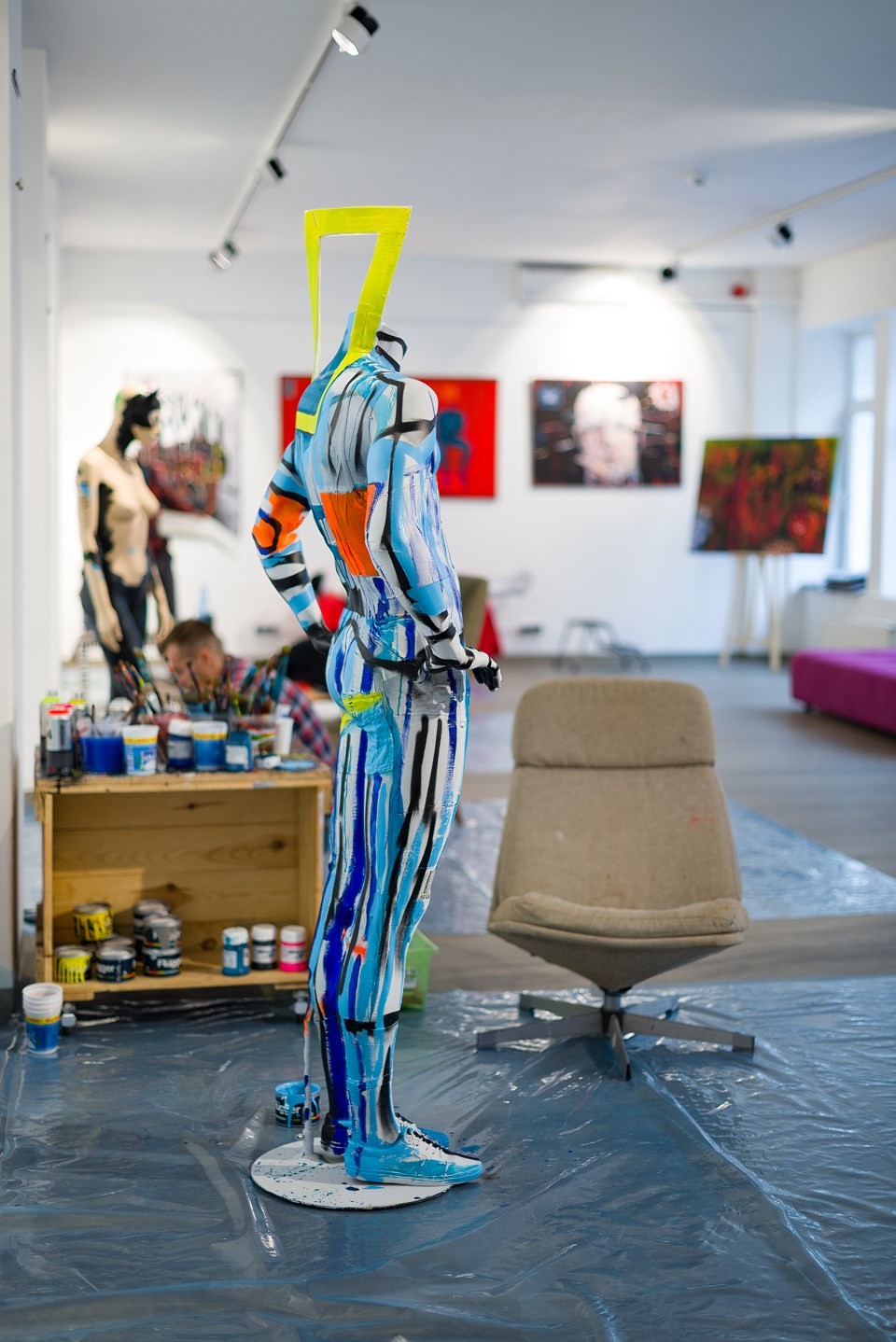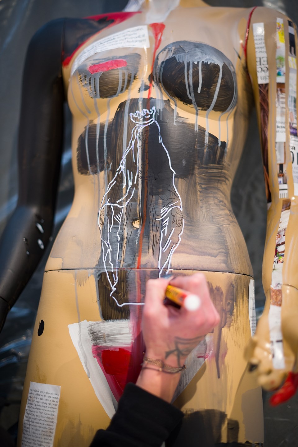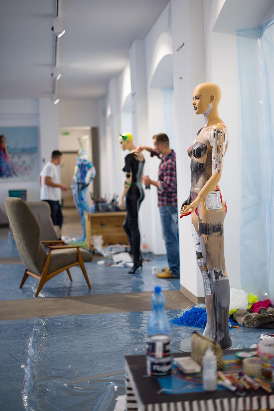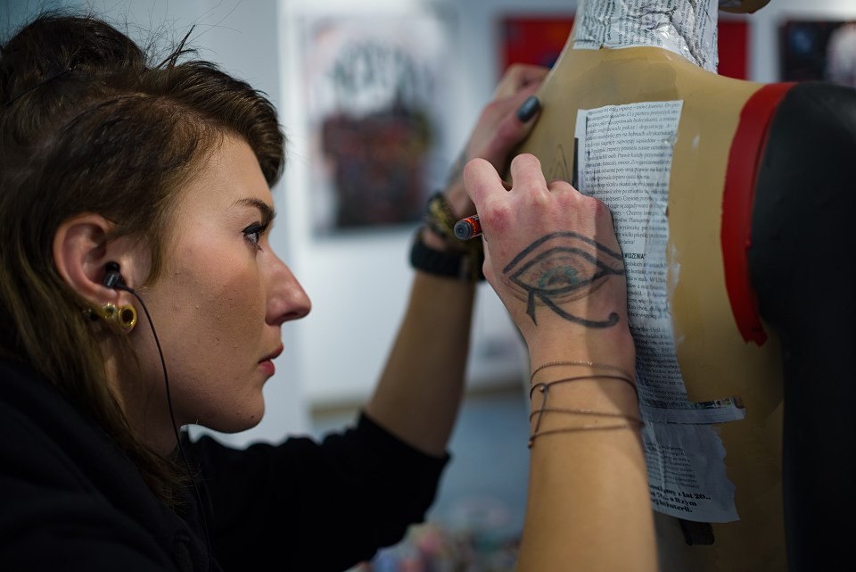 17 października mieliście okazję uczestniczyć w wyjątkowym wydarzeniu. Tego dnia czterech zaprzyjaźnionych z Officyną artystów podjęło się zadania, które miało na celu przybliżenie Wam niesamowitego procesu, jakim jest tworzenie sztuki. Od południa do późnych godzin wieczornych Angelika Korzeniowska, Janusz Orzechowski, Kacper Miszczycha i Wojciech Brewka painting przekształcali zwykłe manekiny wystawowe w niezwykłe dzieła sztuki. Rezultaty ich pracy przeszły nasze najśmielsze oczekiwania. Każdy z artystów stworzył piękną, oryginalną i niepowtarzalną pracę, w wyjątkowym dla siebie stylu. Jesteśmy pod dużym wrażeniem warsztatu Angeliki, Janusza, Kacpra i Wojtka i doceniamy ogromną pracę, jaką włożyli w ten projekt.